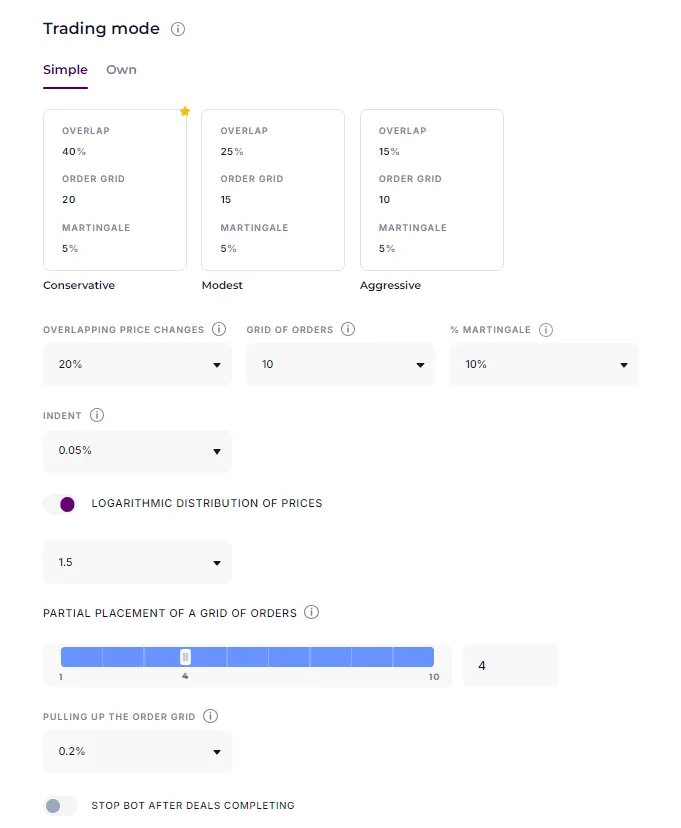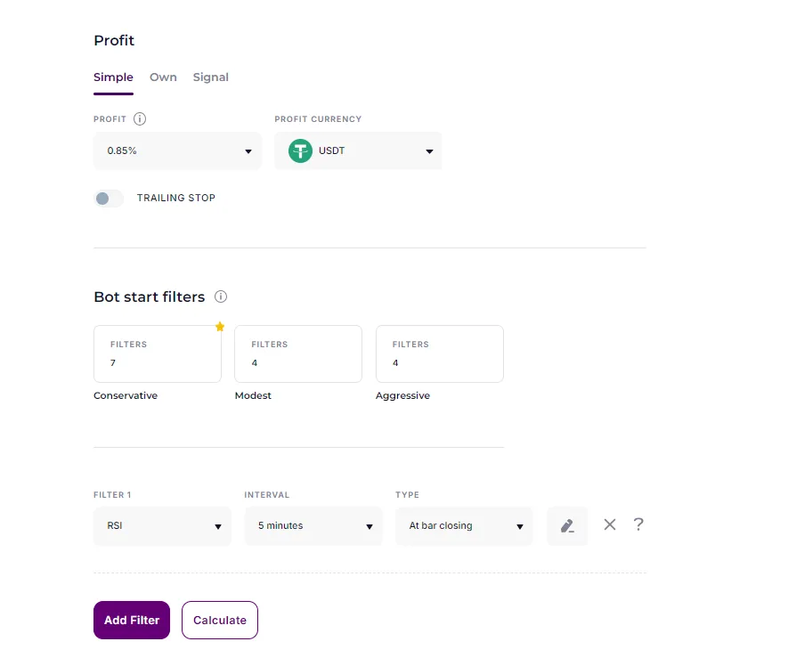 2. Create a bot on the Binance Spot exchange with the algorithm “Short” according to the following settings: