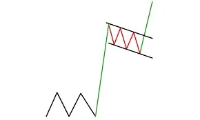A bull flag pattern in trading often looks like a sloping rectangle pointing downwards. This can be confusing for beginners because the direction of the flag is opposite to the expected movement. However, after exiting the pattern, the price usually continues to rise. The opposite situation occurs with a bearish flag — visually, it points upward but signals a further decline.