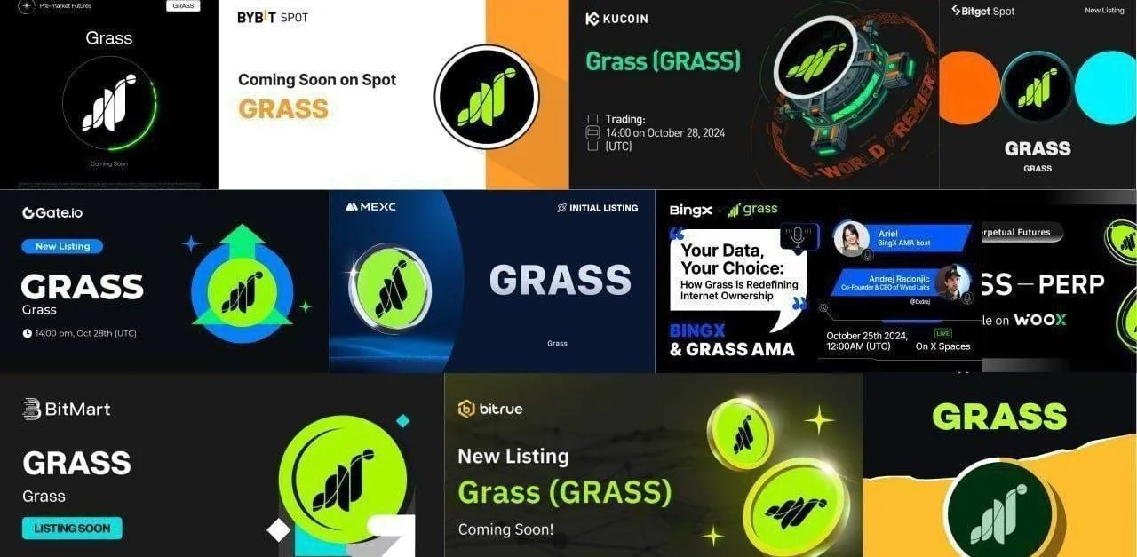 Grass was listed on most major exchanges such as Bybit, OKX, Gate.io, HTX, Bing X, Bitget, Kucoin, MEXC. In the future, the listing of $Grass token is also possible on Binance exchange, as it has repeatedly hinted about the presence of interest in the project in its Twitter.