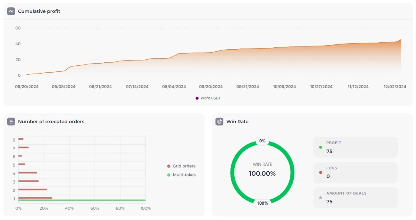 We are convinced that this trading system will become an indispensable assistant for traders seeking simple and effective methods of trading on the market. Flexible grid parameters allow you to adapt it to individual risk and money management, which makes it universal for most assets and deposits, from modest to impressive. However, before you start using it, it is strongly recommended to conduct your own analysis (DYOR) and check on the backtests.