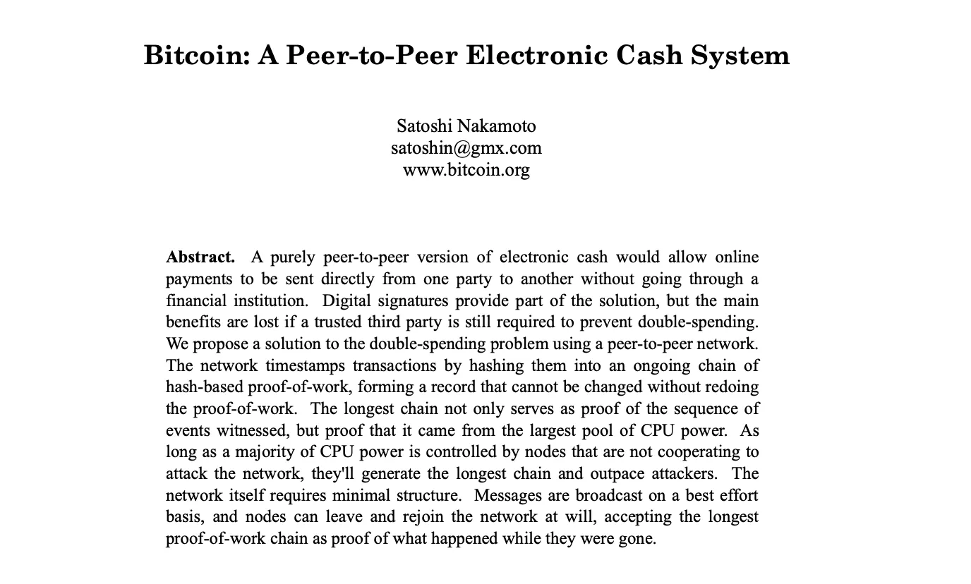 The Bitcoin White Paper is the document that started the whole history of Bitcoin and cryptocurrency in general. It was published in 2008 by a person or group of people under the pseudonym Satoshi Nakamoto. It described in detail how cryptocurrency came about, how a decentralized system should work, and why it could become an alternative to traditional finance.