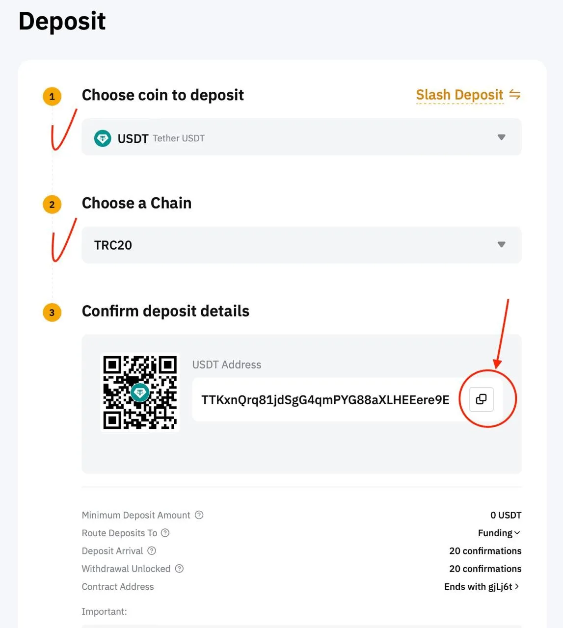 - The address network must match the selected network in the exchanger (e.g., TRC20 or BEP20).