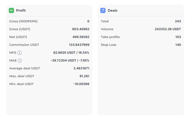 An important detail that helps save your deposit from unnecessary trading decisions is backtests. After assembling all the necessary settings for trading, traders can now check them on the chart history. Backtests will show all entry and exit points of positions, calculated profit and loss and cumulative profit of the strategy.