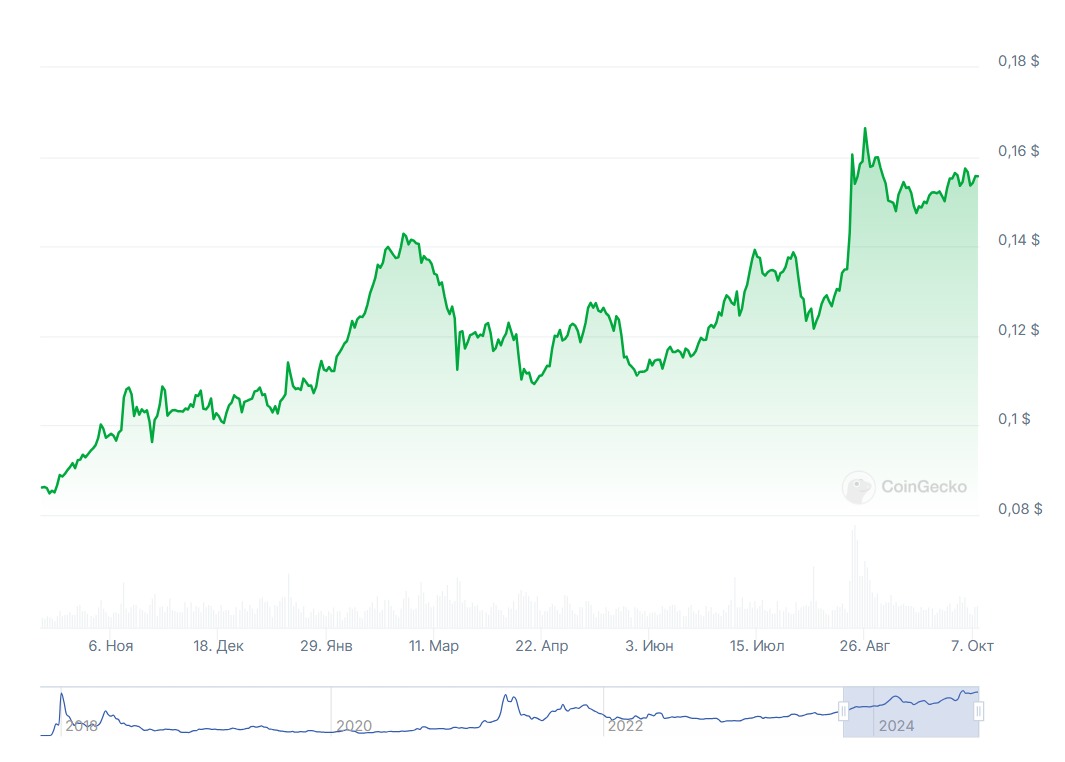 Over the last year, the TRX/USD exchange rate has shown steady growth, which means that traders using the DCA-bot for this pair would have accumulated a position with an average entry point significantly lower than the current market price.
