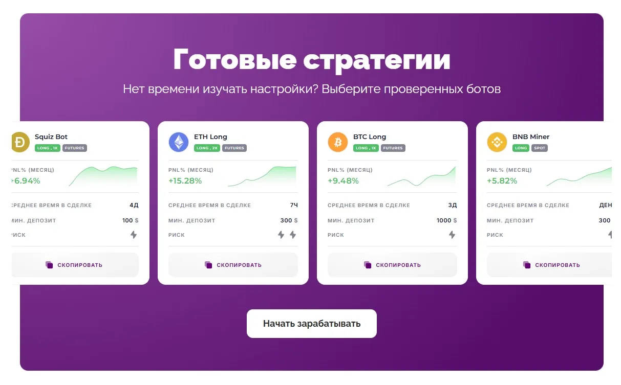 При выборе AI-решения важно учитывать, с какими биржами работает бот, поддерживает ли он торговые сигналы, как реализована защита от любого рода ошибок и доступна ли кастомизация торговой логики.