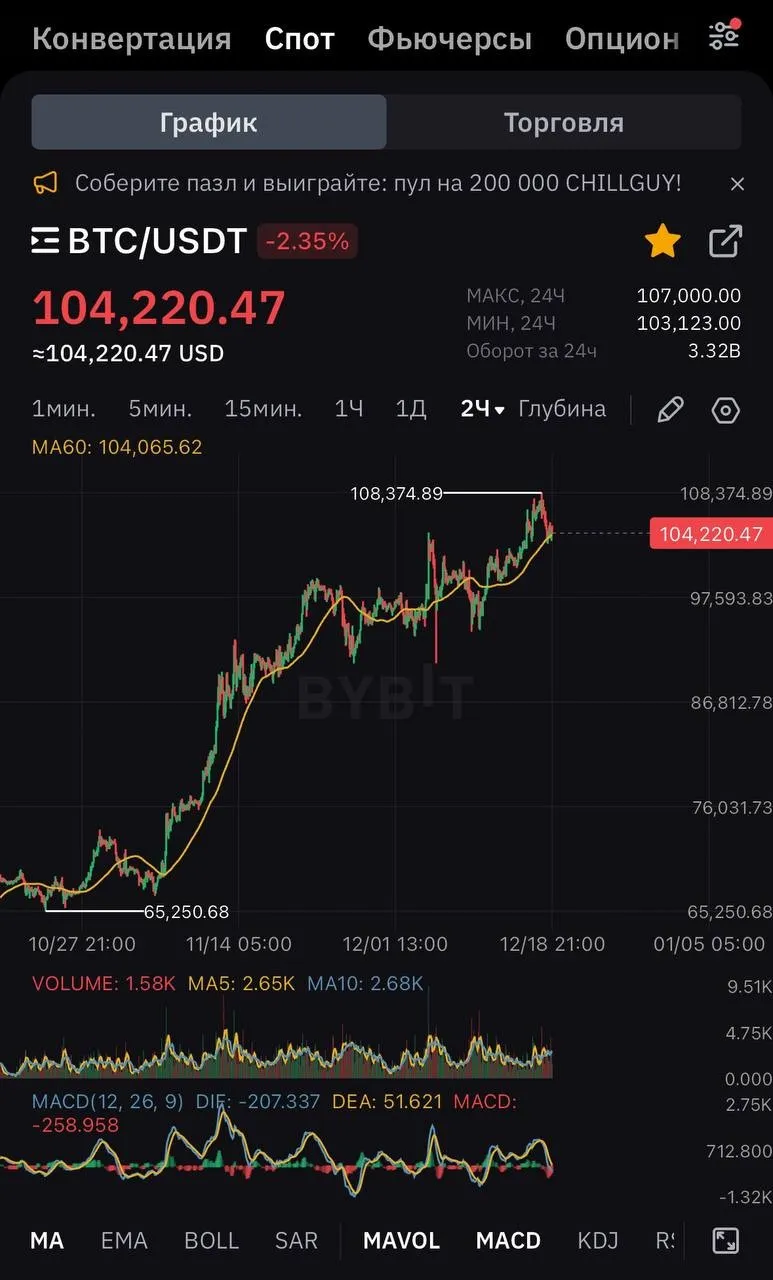 Действия крупных игроков: Манипуляции рынка со стороны китов (крупных держателей биткоина) могут резко изменять курс.