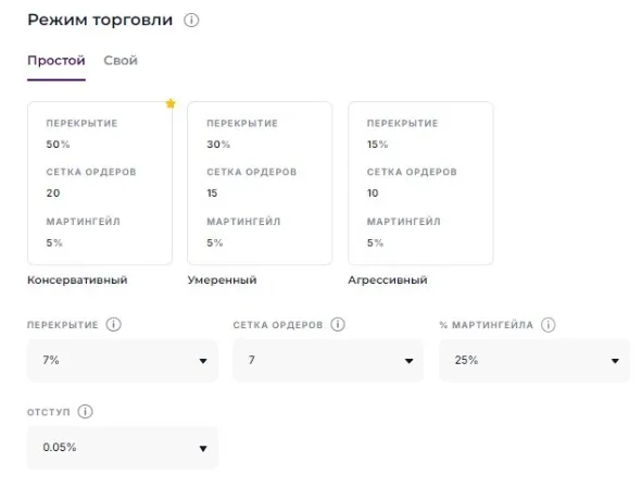 Среднесрочные. Бот может определить потенциал сделки с функцией закрытия позиции по сигналу индикатора. Настройте сетку ордеров на открытие и закрытие, и бот будет сопровождать позицию от начала до ее конца.