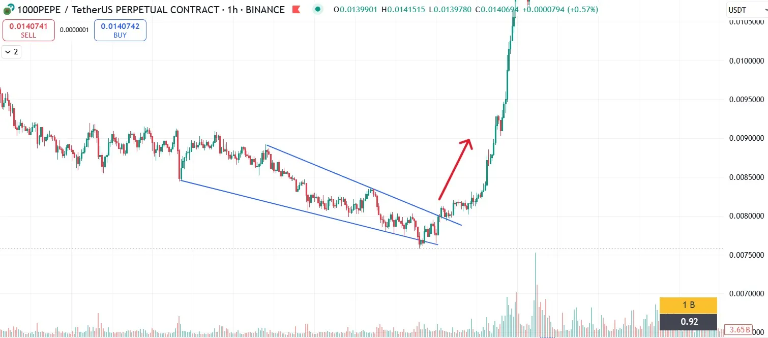 Понимание того, что происходит после паттерна падающий клин, критически важно. Обычно за пробоем следует серия свечей с высоким объемом и ростом, особенно на криптовалютном рынке, где движения могут быть стремительными. Однако существует риск такого явления, как ложный пробой, когда цена кратковременно выходит за пределы фигуры, но затем возвращается внутрь.
