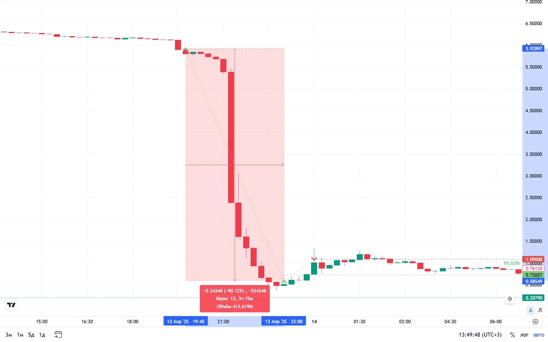 Индикатор изменения цены на 5-минутном таймфрейме со значением ниже -3.5 помогает ловить умеренно сильные импульсы. Это словно Эдисон, тестировавший нагрев нити: ROC измеряет, насколько быстро меняется цена, позволяя входить в сделку не во флэте. Подробнее о ROC — в статье о стратегии «La Catrina».