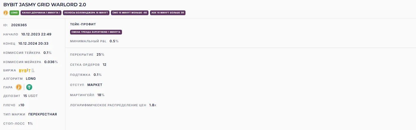 BYBIT JASMY GRID WARLORD 2.0 (~236% годовых)