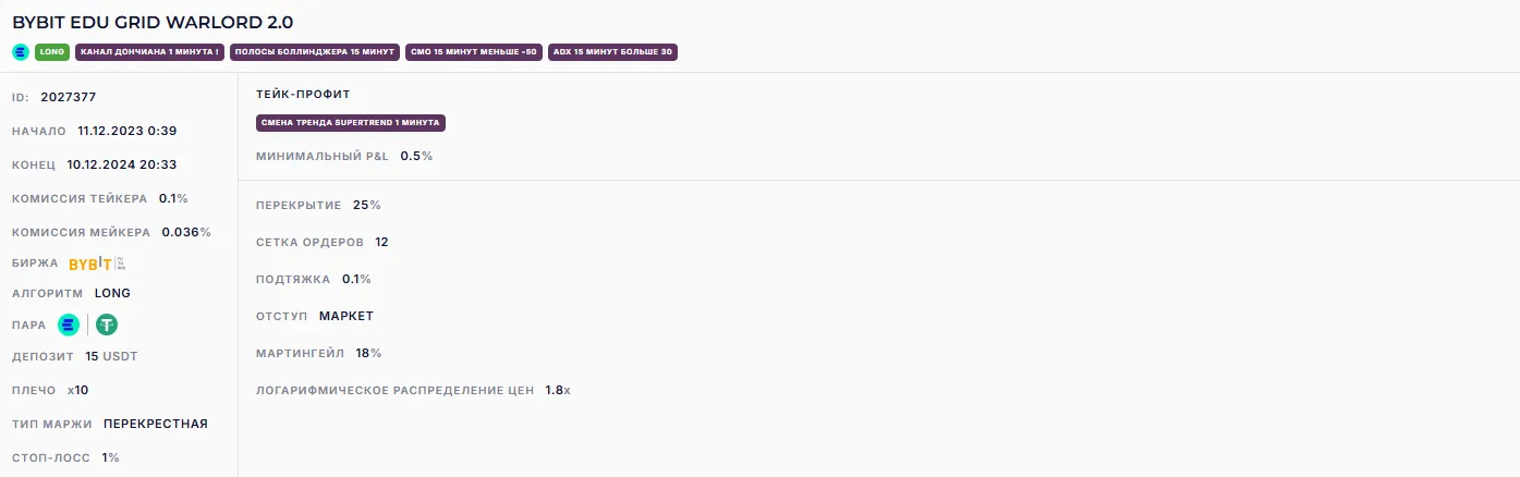 BYBIT EDU GRID WARLORD 2.0 (~212% годовых)