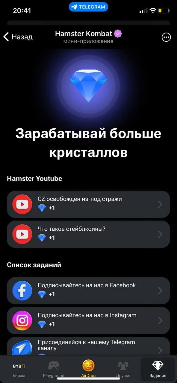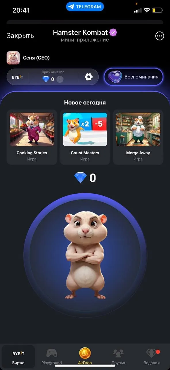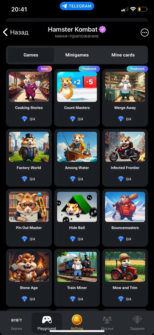 Уже сейчас тапать хомяка больше нет необходимости. Сейчас цель игры – накапливать бриллианты любыми способами. Например, можно играть в игры, приглашать друзей или участвовать в активности игровой экосистемы.