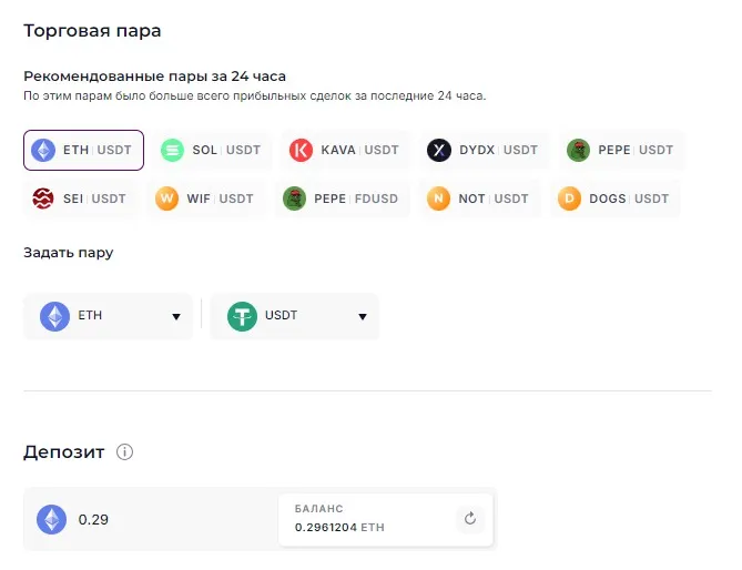 Покажем на примере ETH, так как на момент написания статьи токены Хамстер и Катизен еще не залистились на биржах.