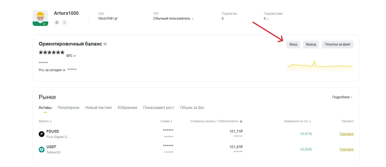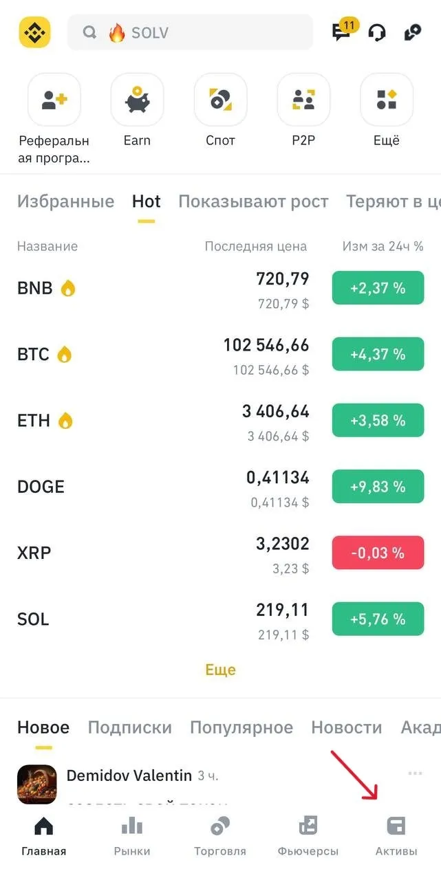 - Зайти в раздел «Активы» на платформе Binance.