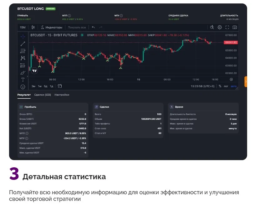 Полученные данные позволяют объективно проверить стратегию на ее истинную эффективность и устойчивость в разных рыночных фазах. Визуальный формат отчетов упрощает анализ, даже если пользователь ранее не имел опыта в трейдинге или автоматизации. Поэтапный гайд, как пользоваться бэктестами, читайте в нашем блоге — Как использовать бэктесты.
