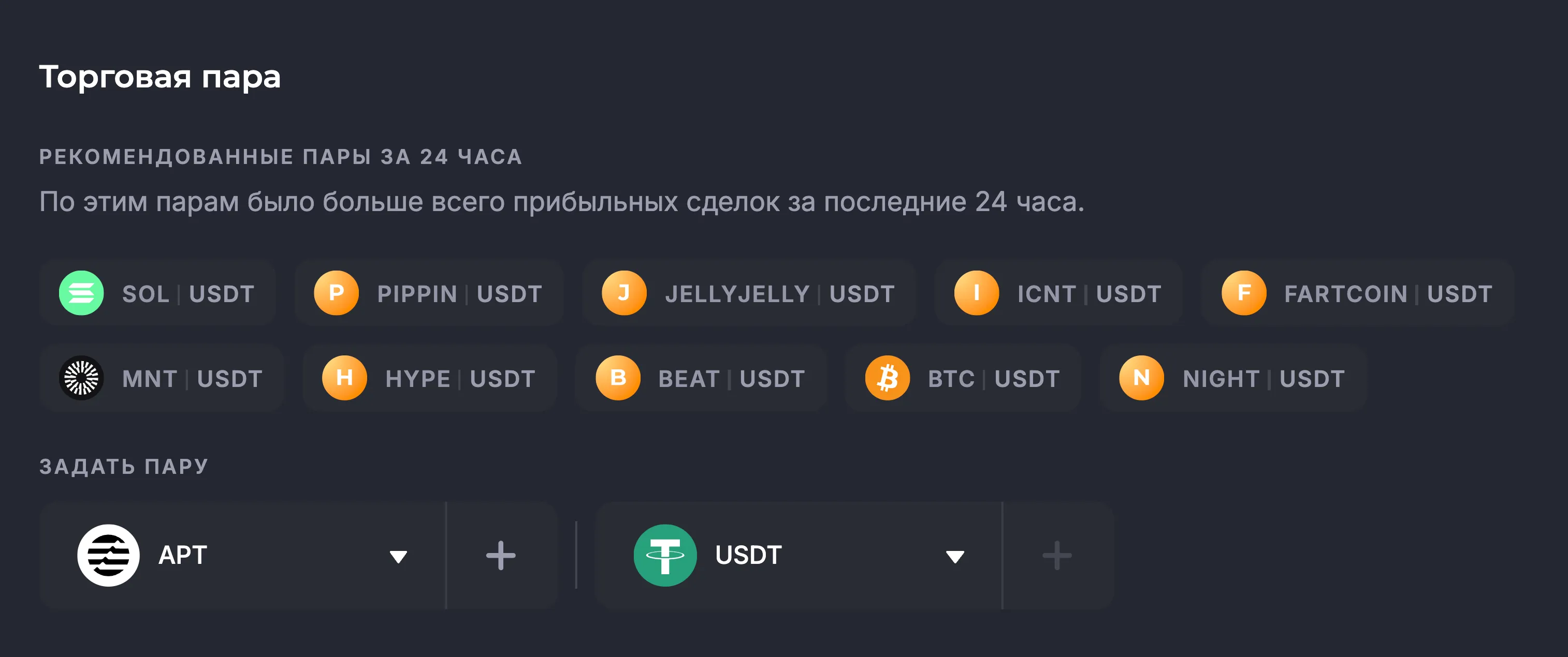 Сколько монет можно добавить в мультипарного бота? Ограничений по количеству нет — можно выбрать хоть все доступные пары. Но для стабильной работы лучше выбирать монеты со схожей динамикой.
