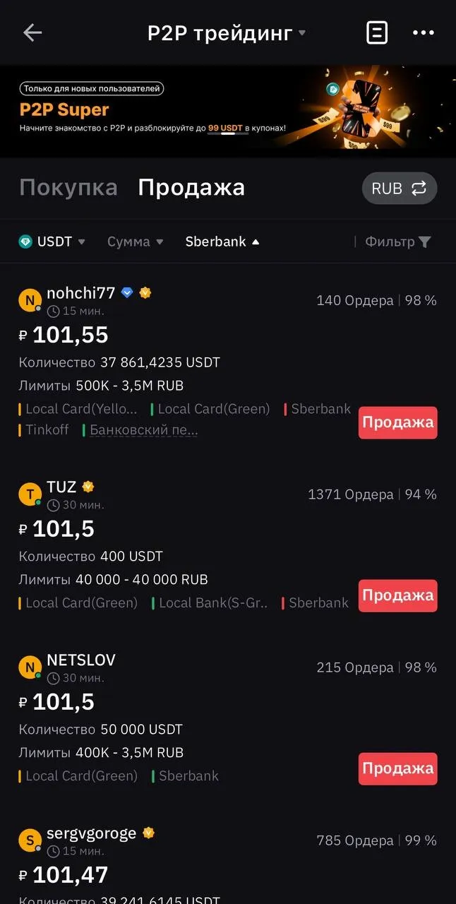 – Купить USDT за рубли на Binance P2P.
