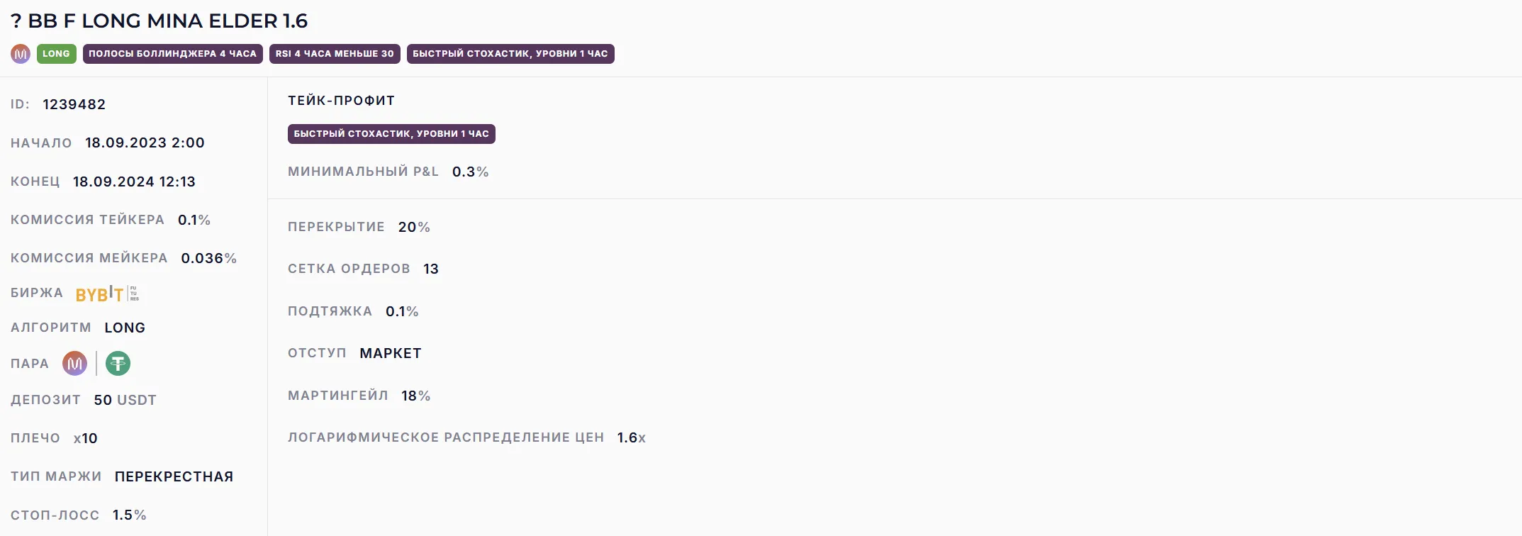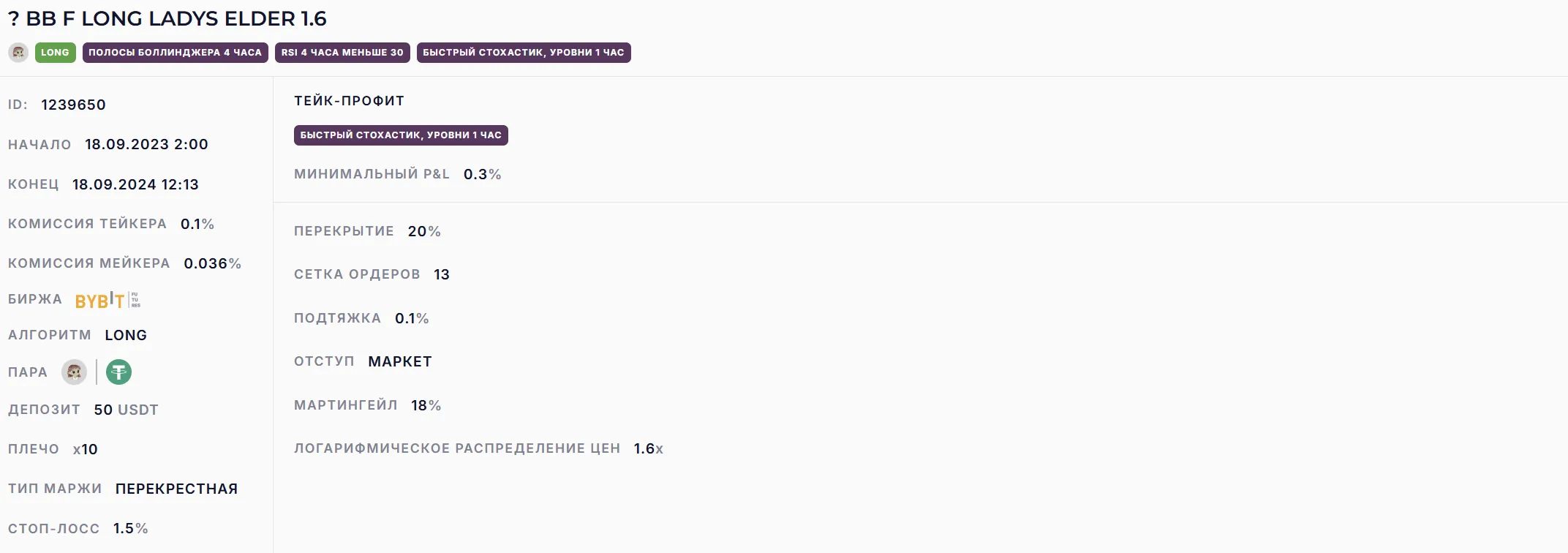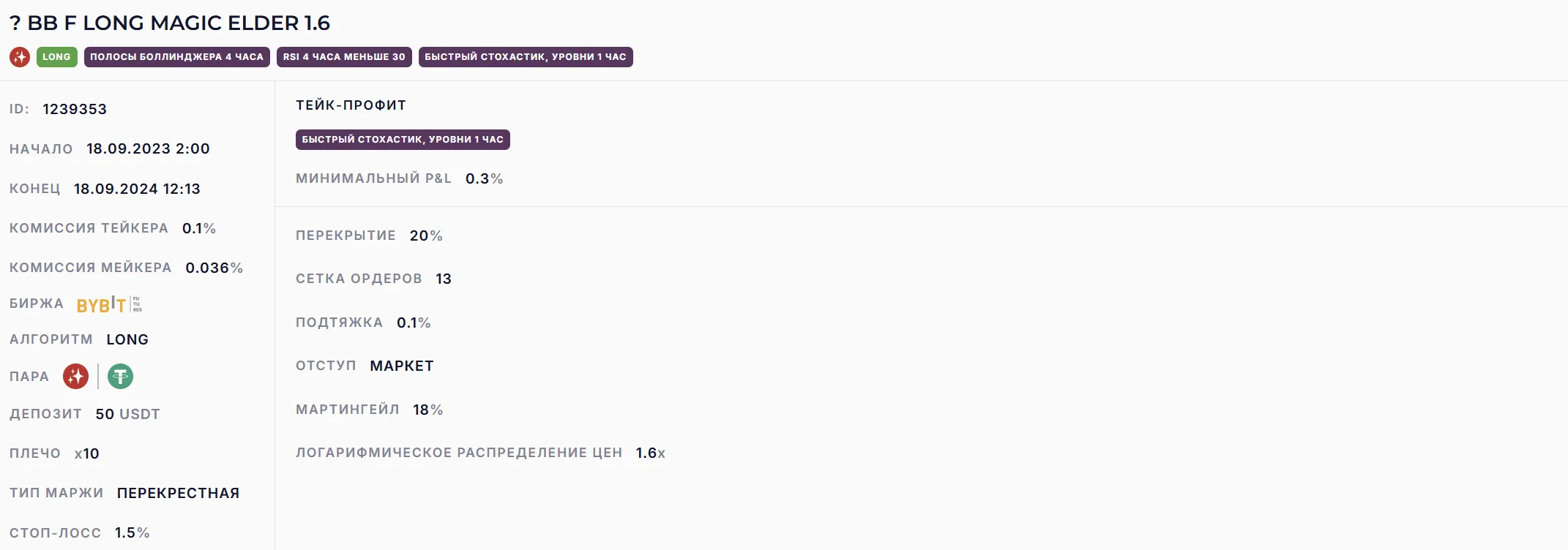 Стоит отметить, что данные торговые индикаторы - довольно универсальны и могут подойти для создания иных торговых стратегий. Попробуйте “поиграть” с таймфреймами или, например, выставить дополнительные индикаторы. Также, можете попробовать изменить остальные настройки стратегии: ”% перекрытия”, ”% Мартингейла” или количество ордеров в сетке, взяв за основу данные точки входа.