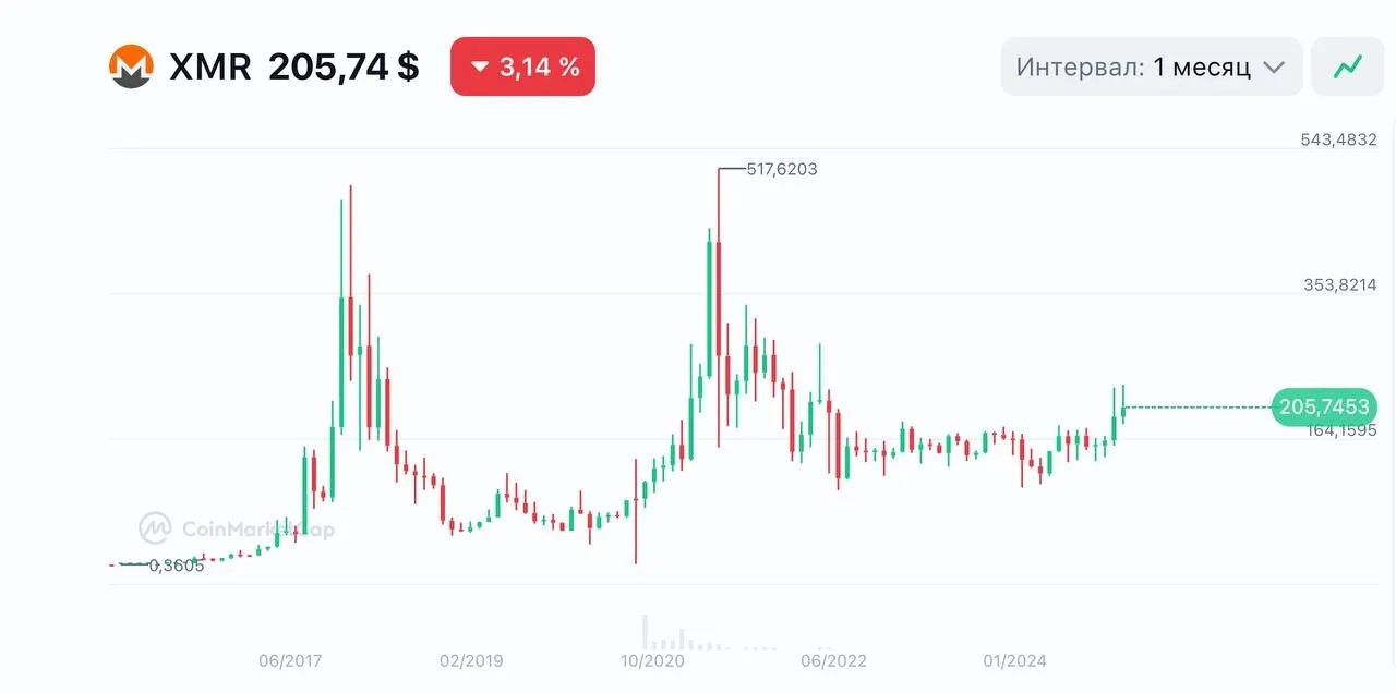Monero (XMR) считается лидером среди анонимных криптовалют благодаря высоким стандартам конфиденциальности.