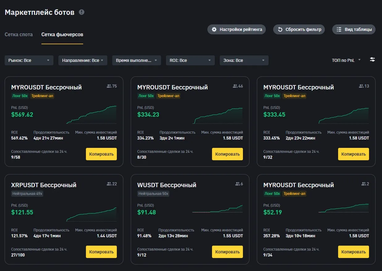 К сожалению, проверить настройки на дистанции через бектесты нельзя, а значит, у трейдера есть только P&L от каждого бота.