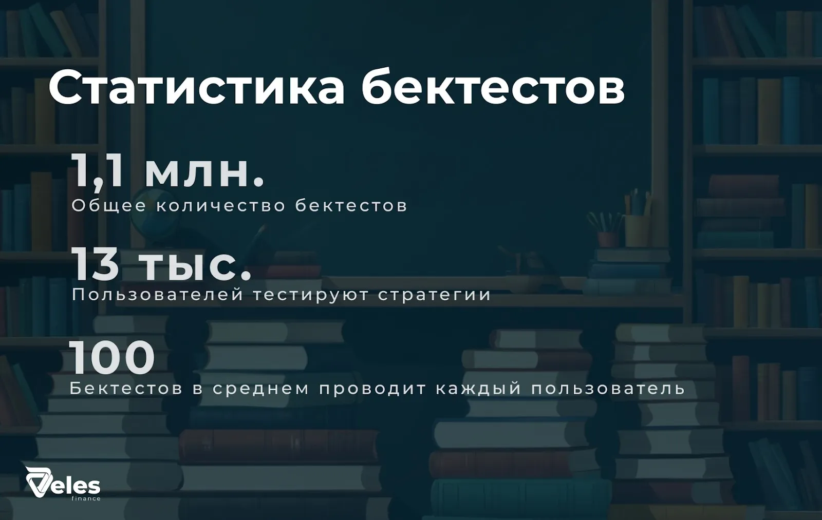 Платформа Veles с момента запуска достигла невероятного рубежа – свыше одного миллиона бектестов! Каждый пользователь в среднем совершил 100 бектестов!