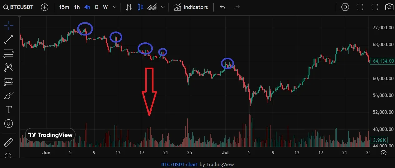 2. Перевірити обсяги - якщо свічка супроводжується високим обсягом, сигнал надійніший.