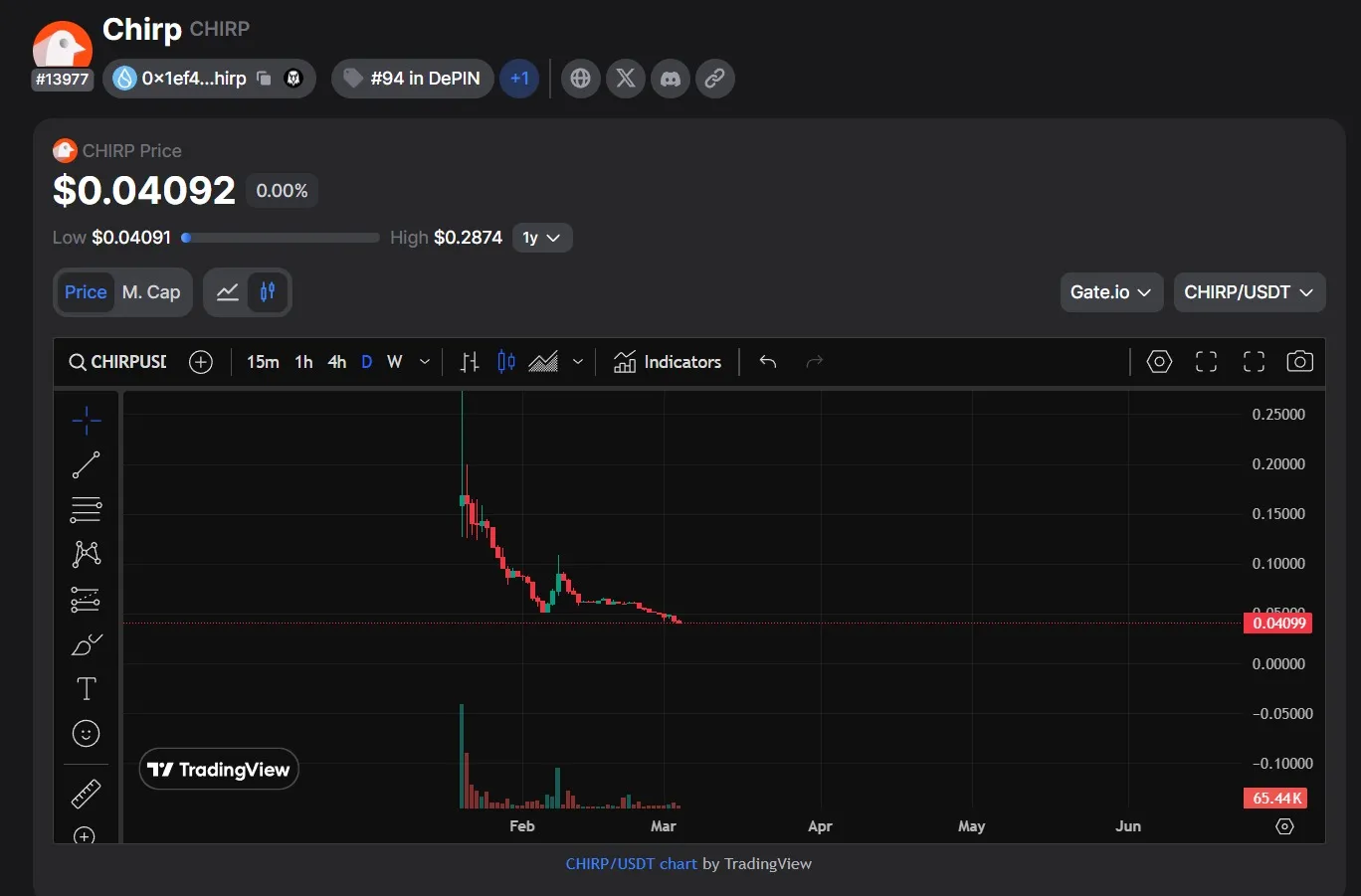 Chirp - проєкт, що створює розподілені мережі зв’язку для інтернет-інфраструктури. Він використовує токени для винагороди учасників мережі, які надають пристрої та інфраструктуру.