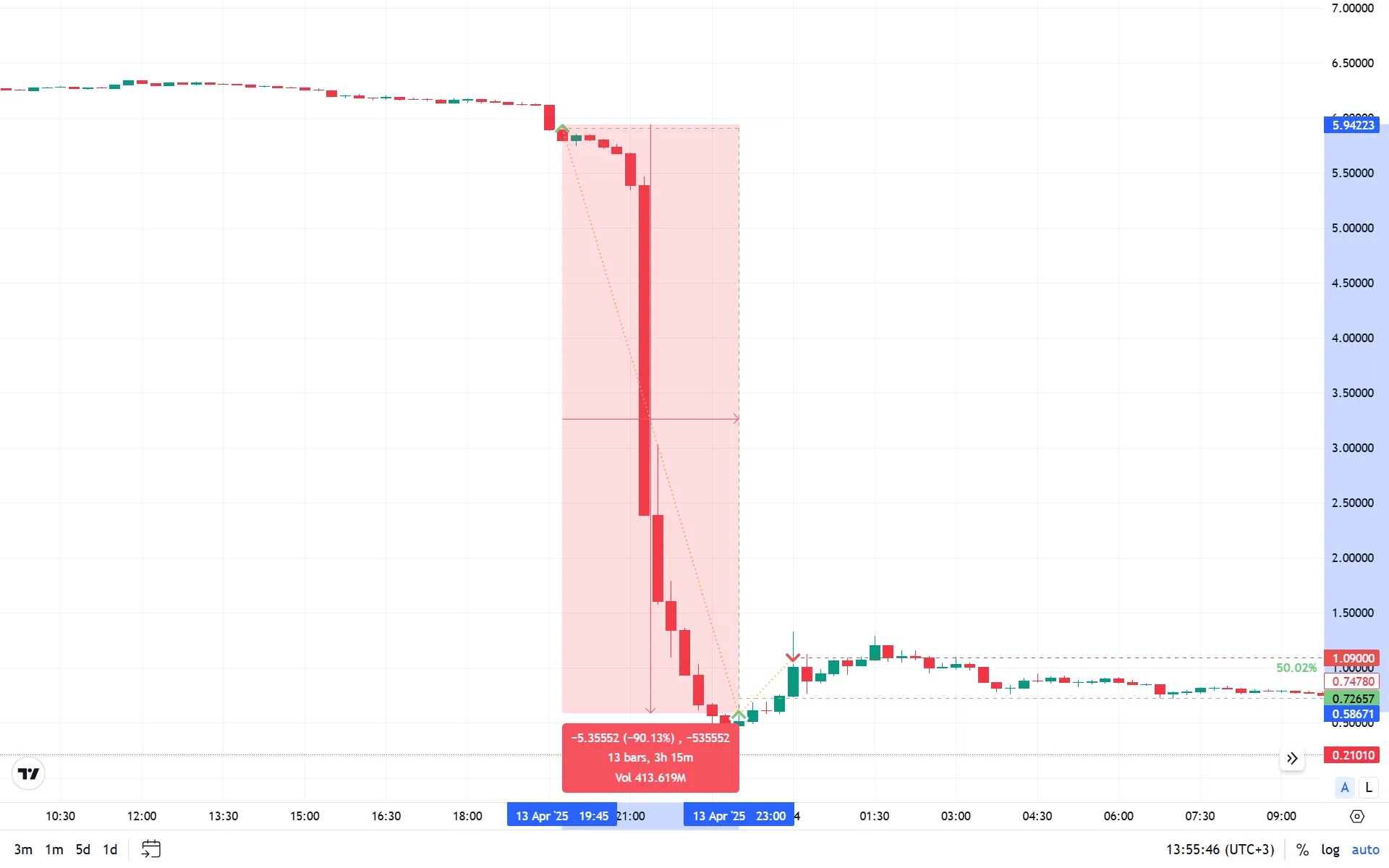 Індикатор зміни ціни на 5-хвилинному таймфреймі зі значенням нижче -3,5 допомагає ловити помірно сильні імпульси. Це немов Едісон, який тестував нагрівання нитки: ROC вимірює, наскільки швидко змінюється ціна, дозволяючи входити в угоду не у флеті. Детальніше про ROC — у статті про стратегію «La Catrina».