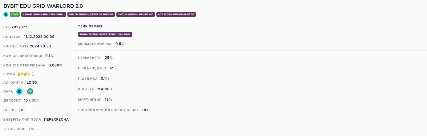 BYBIT EDU GRID WARLORD 2.0 (~212% річних)