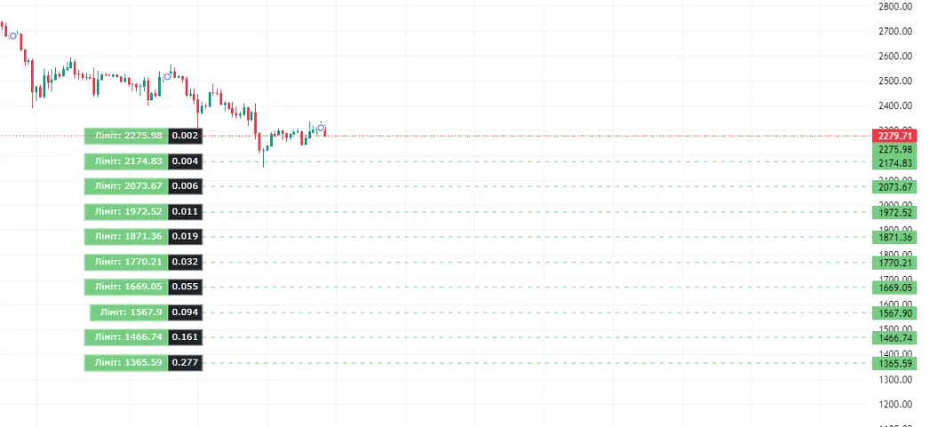 Якщо ви працюєте з рівнями Фібоначчі або маєте власну інвест-ідею, за якою хочете завантажитися в монету, встановіть цінові значення для розміщення ордерів або поєднайте їх із будь-яким із 20 індикаторів, представлених на платформі. Також можете інтегрувати і власну стратегію TradingView.