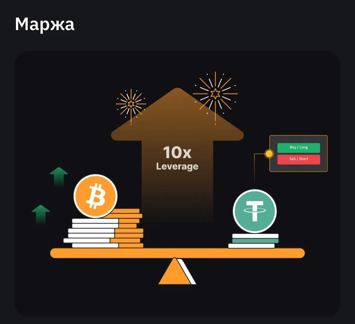 Маржа визначає, скільки коштів можна позичити. Наприклад, якщо біржа дозволяє кредитне плече 5x, а у вас є 100 USDT, то максимальний обсяг шорт-позиції складе 500 USDT.