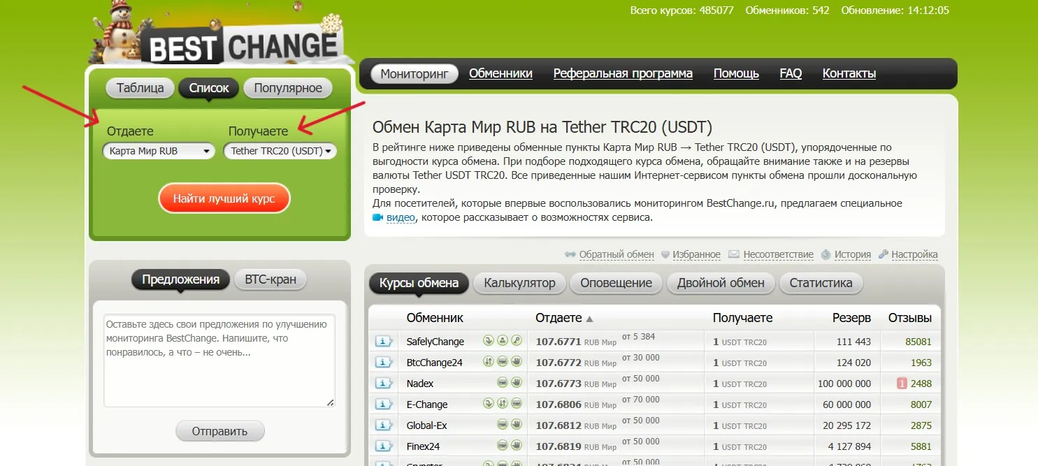 1. Перейдіть на сторінку сайту BestChange та відфільтруйте пошук: