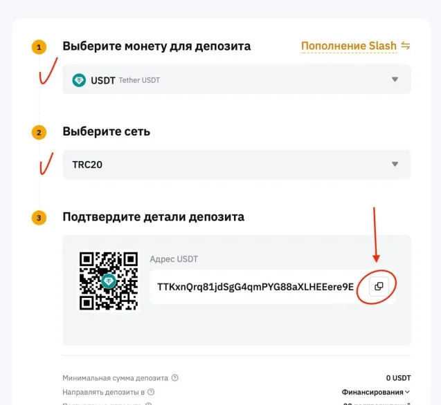 4. Мережа адреси повинна збігатися з вибраною мережею в обміннику (Наприклад: TRC20 або BEP20).