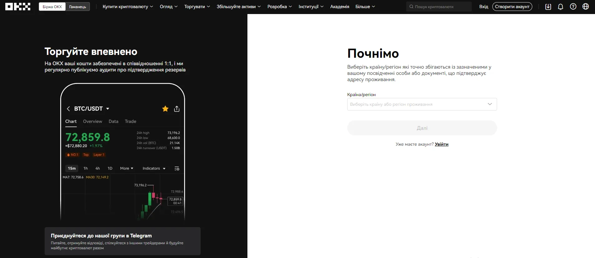 Реєстрація на біржі OKX