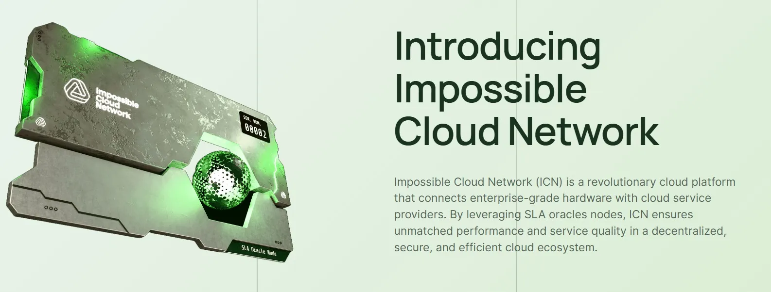 Impossible Cloud Network - це децентралізована платформа для хмарного зберігання даних і обчислень, що забезпечує високу безпеку, надійність і масштабованість.