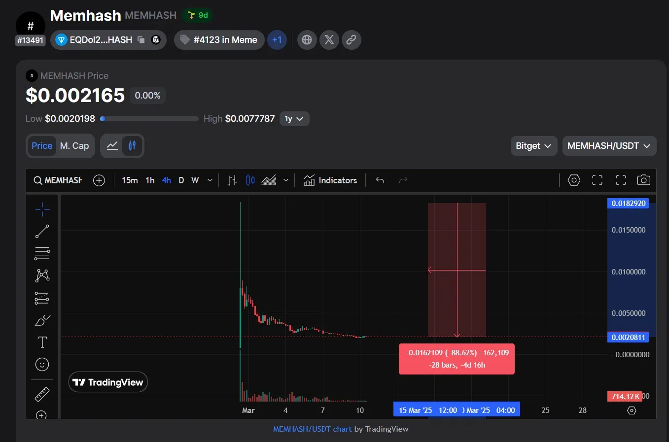 Ціна Memhash на момент його запуску 28 лютого продемонструвала волатильність, що характерно для більшості нових токенів.