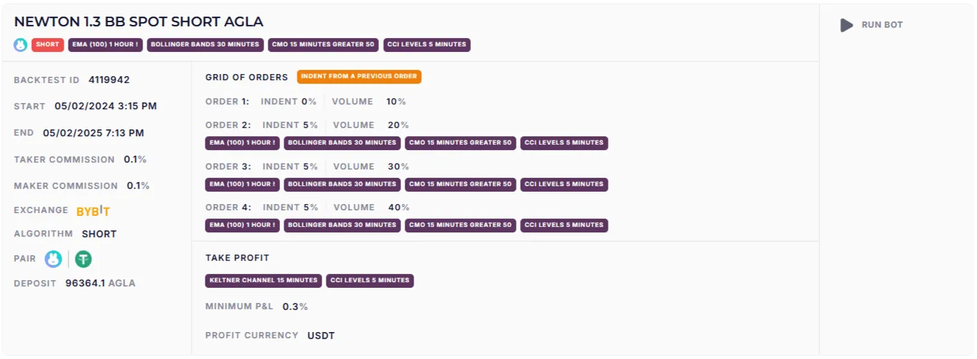 Бектест 1: NEWTON 1.3 BB SPOT SHORT AGLA