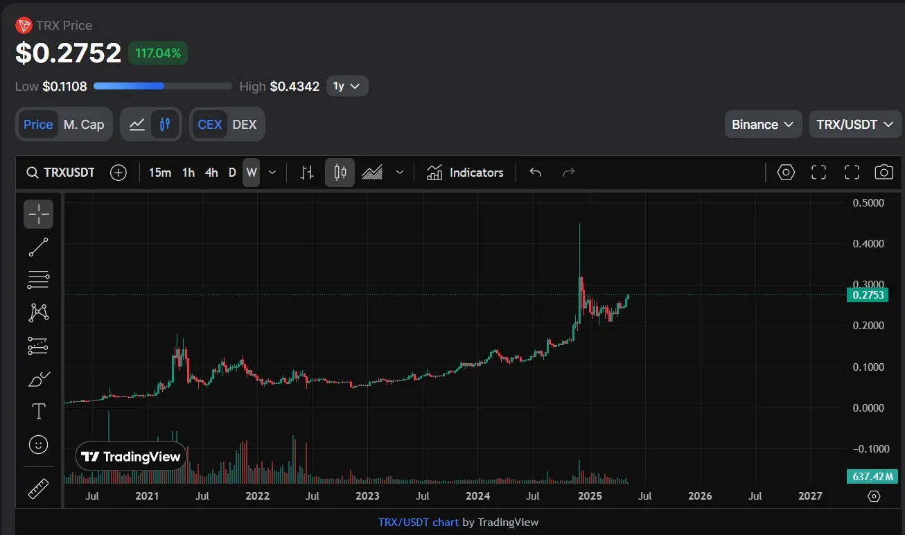 TRX і токени TRC-20 підтримуються на найбільших централізованих біржах (Binance, Bybit, OKX, HTX, Gate. io i BingX) і в рамках децентралізованих рішень на кшталт JustLend, SunSwap тощо. Це створює умови для арбітражних стратегій між різними торговими майданчиками та екосистемами.